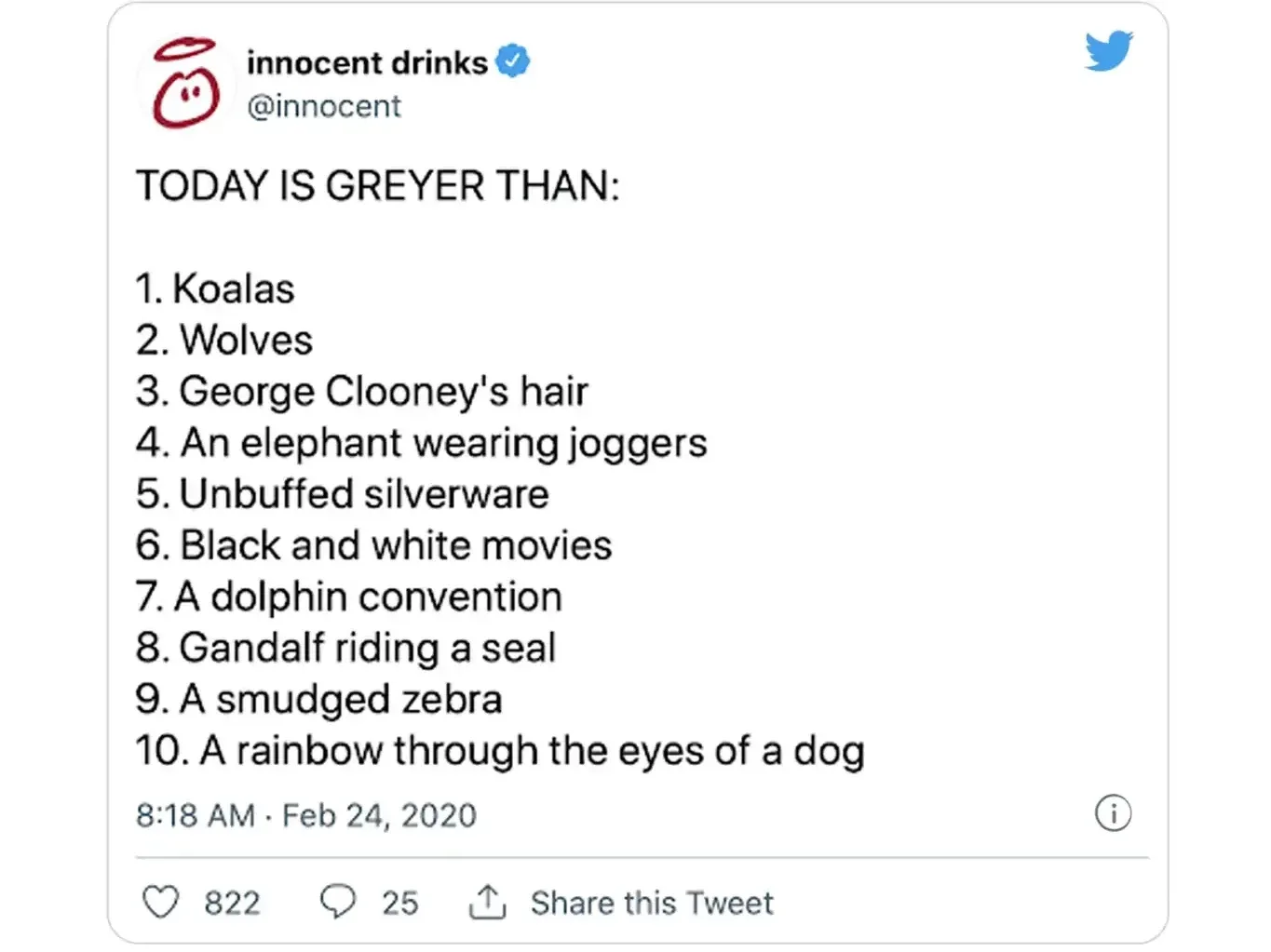 The social media team at Innocent are renowned for rarely missing a beat. They perfectly pair the promotion of their healthy smoothies and drinks and the healthy sound of their social media followers laughing at Innocent’s social media content.